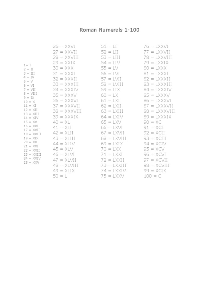 Roman Numerals 1 To 100 Wall Stickers For Kids Tenstickers from dbdzm869oupei.cloudfront.net What is 4 in roman numerals; How to convert roman numerals to number; Date to roman numerals converter; A partial list runs from 10,001 to 3,999,999,999. Enter the roman numeral or number and press the convert button: Prepostseo roman numerals converter is the best tool for online roman numeral conversion. You'll not find any roman numeral translator as compared to our roman numerals calculator. M = masculine, f = feminine, n = neuter